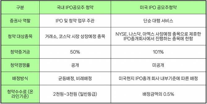 국내 공모주 청약 시 일반 청약자의 증거금은 50%이므로 미국 주식 청약 시 더 많은 현금이 필요한 것입니다.