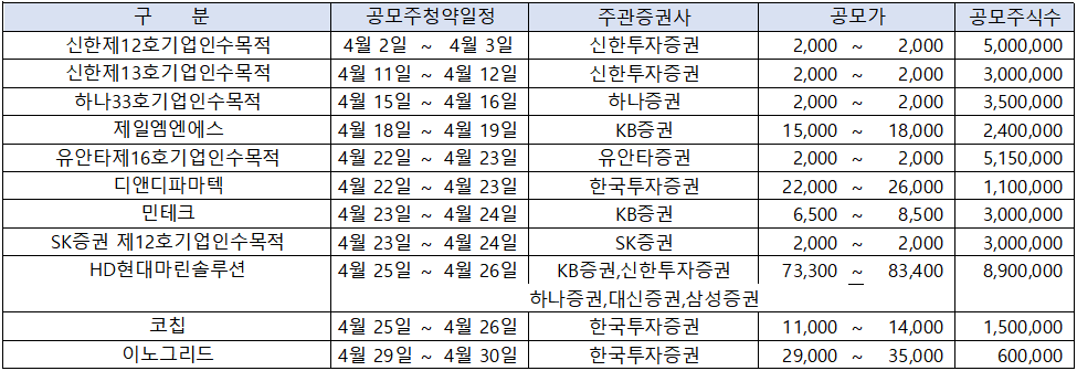 [2024년 4월 공모주 청약 일정 종합 ]