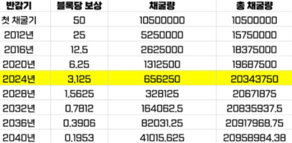 이번 4월 20일 반감기가 지나면 블록당 보상이 6.25개에서 3.125개로 줄어들고, 시장에 공급되는 비트코인의 총량도 줄어들게 됩니다.