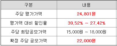 당초 희망 공모가격 상단 18,000원 대비 4,000원(22.22%) 상향 조정된 가격입니다.