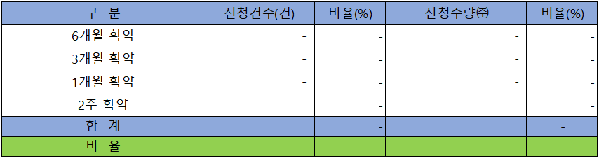 의무 보유 확약 건수 역시 스팩 주식인 관계로 신청 내용이 없습니다.