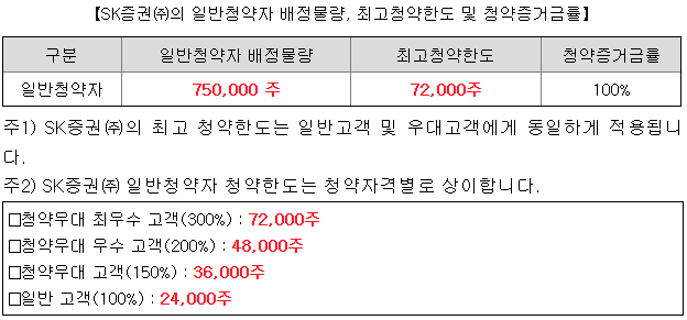 - 청약 가능 증권사 : SK증권