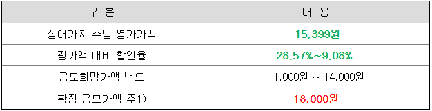 당초 희망 공모가격 상단 14,000원 대비 4,000원(28.57%) 상향 조정된 가격입니다.