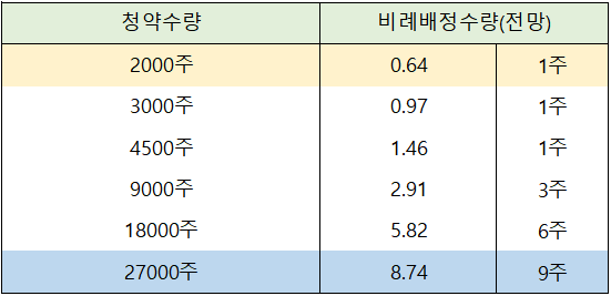 비례배정의  경우 1주 배정을 위한 커트라인은 2,000주로 전망되고 있습니다.