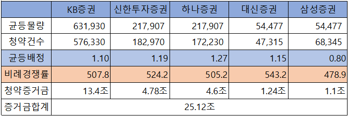 증권사별 비례 경쟁률은 아래 표에서 보실 수 있습니다.