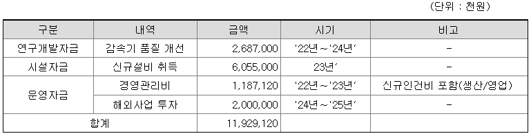 회사는 2022년 매출액 100억원대에서 2024년 매출액 430억원을 기대하고 있는데 고정밀 감속기 매출의 대폭 신장을 목표로 하고 있습니다.