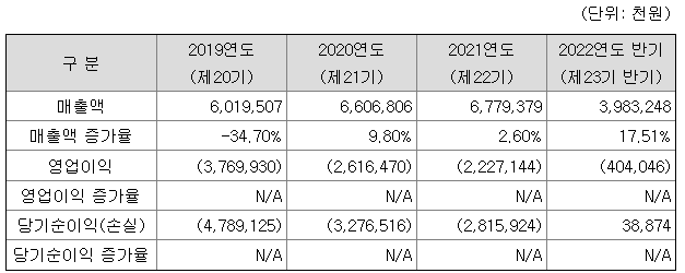 하지만 아직 정밀 감속기 매출이 본격화되기 전이어서 3개년 연속 적자 상태이며, 향후 2023년부터 감속기 제품 매출 신장과 함께 당기순익 흑자를 목표로 하고 있습니다.
