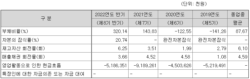 2020년까지는 완전 자본잠식 상태였으나 우선주의 보통주 전환으로 자본 잠식을 해소한 바 있습니다.
