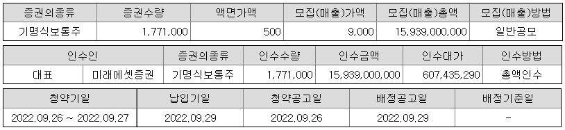 - 공모 청약일 : 10월 12일(수) ~10월 13일(목)