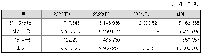 플라즈맵은 금번 공모를 통해 조달된 자금으로 연구개발비에 59억원, 신규 설비 취득에 90억원을 사용하고, 운영자금으로 5억원을 사용할 계획입니다.