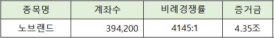 노브랜드의 청약에는 4.35조원의 증거금이 모이면서 4415 : 1의 경쟁률을 나타냈습니다.