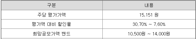 희망 공모가격은 10,500원 ~ 14,000원이고, 한국투자증권에서 청약 가능합니다.