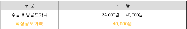 제시 가격 내용을 바탕으로 희망 공모가 상단으로 공모가를 확정했지만, 최근 기관투자자들의 수요예측 결과를 바탕으로 확정공모가를 상향 조정하는 추세에 비하면 성공적이라고 보기 어렵습니다.