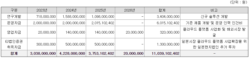 [공모금액 사용계획]