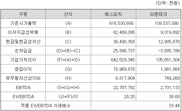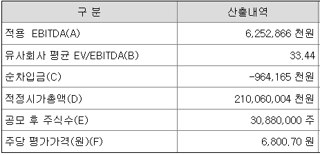 <유사회사의 평균 EV/EBITDA 배수 산정>