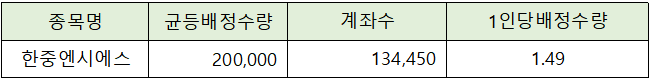 이상 한중엔시에스 청약 결과 속보였습니다.