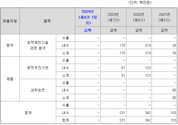 당사는 2023년 3월 국내 민간기업 최초로 독자 개발한 시험발사체 한빛-TLV 발사에 성공하는 등 국내 우주산업을 선도하고 있으며, 관련 산업의 성장과 함께 동반 성장할 것으로 전망됩니다.