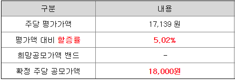 당초 희망 공모가격 상단 14,200원 대비 3,800원(26.76%) 상향 조정된 가격입니다.
