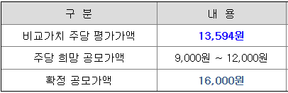 당초 희망 공모가격 상단 12,000원 대비 4,000원 (33.33%) 상향 조정된 가격입니다.