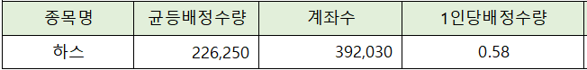 균등배정은 총 392,030 계좌가 청약에 참가해 균등 배정 수량 226,250주를 감안하면 1인당 0.58주가 배정될 것으로 전망되고 있습니다.