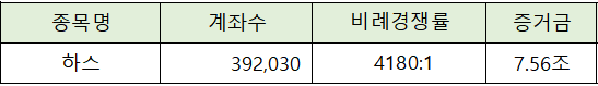 하스의 청약에는 7.56조원의 증거금이 모이면서 4,180 : 1의 높은 비례 경쟁률을 나타냈습니다.