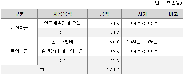 케이쓰리아이는 금번 공모를 통해 조달된 자금으로 연구개발장비 구입과 연구개발비에 62억을 사용하고 나머지 110억을 운영자금으로 사용할 계획입니다.