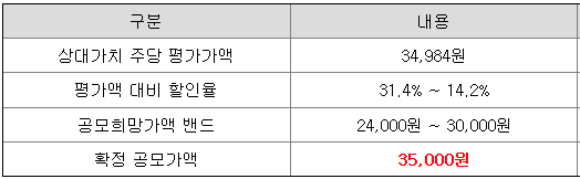 당초 희망 공모가격 상단 30,000원 대비 5,000원 (16.67%) 상향 조정된 가격입니다.