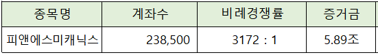피앤에스미캐닉스의 청약에는 5.89조원의 증거금이 모이면서 비례경쟁률 3,172 : 1의 실적을 나타냈습니다.