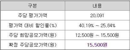 당초 희망 공모가격 상단으로 결정된 것입니다.