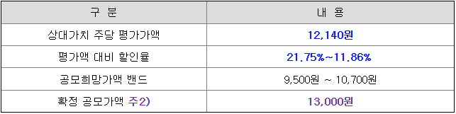 당초 희망 공모가격 상단 10,700원 대비 2,300원(21.50%) 상향 조정된 가격입니다.