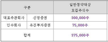 - 청약 가능 증권사 : 신영증권, 유진투자증권