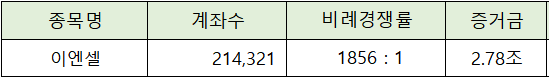 이엔셀의 청약에는 2.78조원의 증거금이 모이면서 1,856 : 1의 비례 경쟁률을 나타냈습니다.