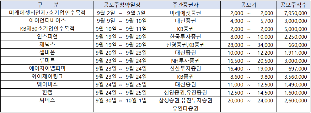 [ 2024년 9월 공모주 청약 일정 종합 ]