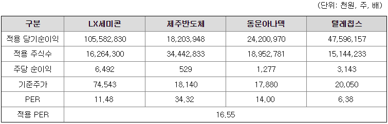 <유사회사의 평균 PER 배수 산정>