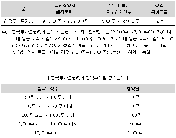 - 청약 가능 증권사 : 한국투자증권