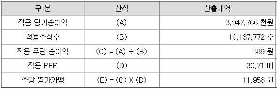 <유사회사의 평균 PER 배수 산정>