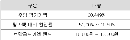 - 공모청약일 : 10월 7일(월) ~ 10월 8일(화)