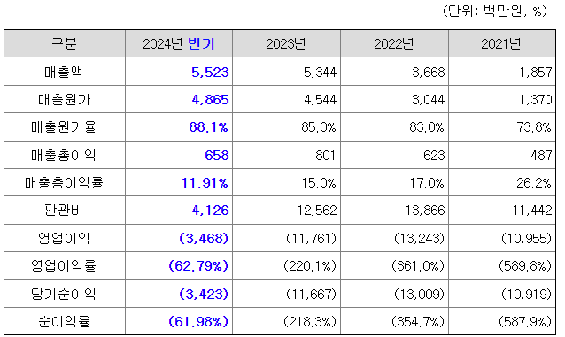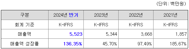 에이치엠파마의 매출액은 2021년 19억, 2022년 37억, 2023년 53억, 2024년 반기 55억으로 상승세를 지속하고 있습니다.