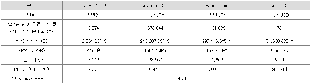 또한 공모가 산정 시 적용된 유사회사의 평균 PER 배수가 외국 기업을 포함시키면서 너무 높아, 공모가 자체가 높아졌다는 생각이 듭니다.