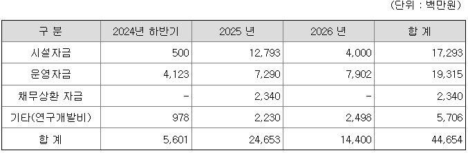 [공모자금 사용계획]