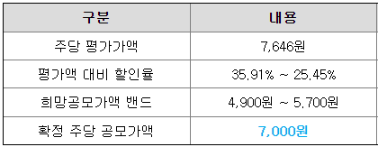 희망 공모가격 상단 이상 신청 비율은 99.62%였으며, 확정 공모가 7,000원 이상 신청 비율도 95.74%에 달했습니다.