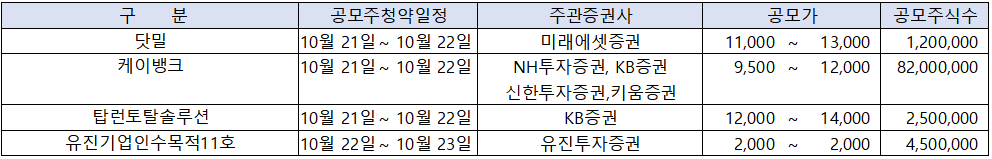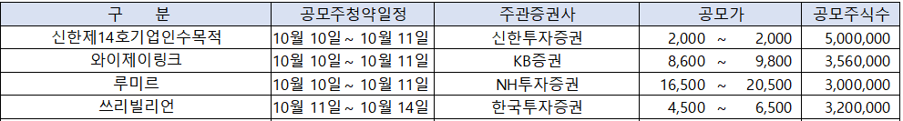 [ 2024년 10월 공모주 청약 중복 일정 - 5 ]