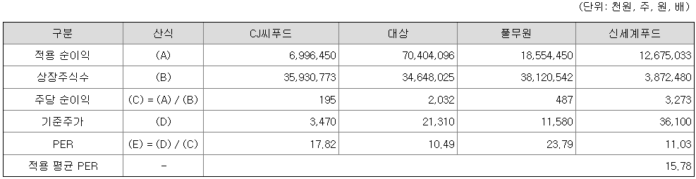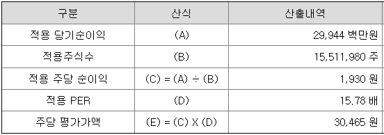 <유사회사의 평균 PER 배수 산정>