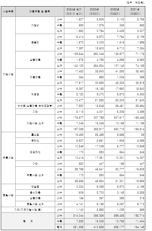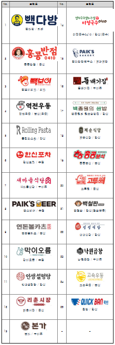 동사는 총 25개 브랜드를 구축 및 운영하고 있으며, 그 상세 내용 및 가맹점, 직영점 운영 현황은 아래와 같습니다.