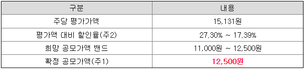 당초 공모 희망 가격 상단으로 결정된 것입니다.
