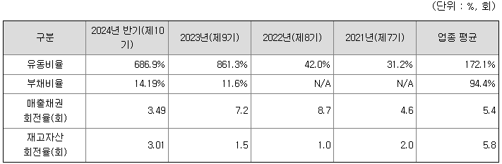 동사는 2023년 12월에 기발행한 상환전환우선주가 전량 보통주로 전환됨에 따라 유동부채가 감소하고 자본이 증가되었으며, 유동비율도 개선되었습니다.