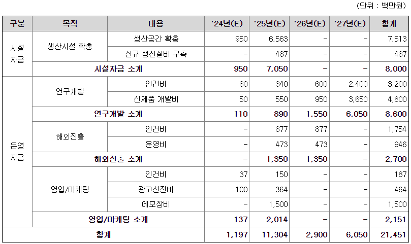 [공모자금 사용계획]