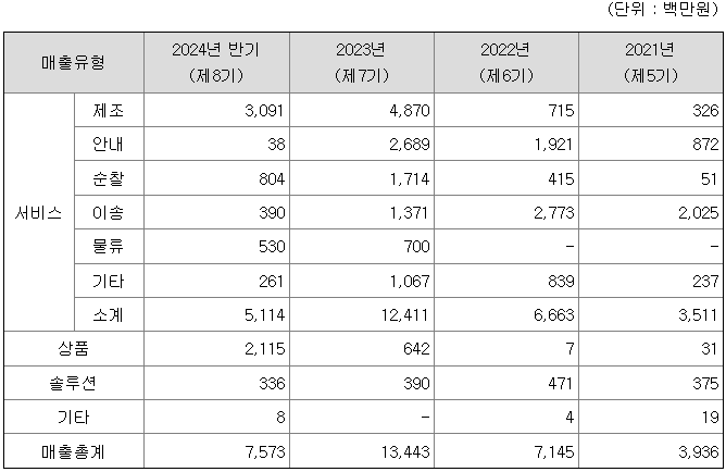 소프트웨어 기술 역량과 하드웨어 공급 역량을 바탕으로 로봇 서비스와 로봇 솔루션 영역의 다양한 분야에서 사업을 진행 중이며, 세분화된 사업 도메인에서 상용화를 완료하여 제품을 공급하고 있습니다. 핵심 기술인 CHAMELEON과 CROMS를 기반으로 우수한 로봇 소프트웨어 기술 역량과 자회사인 '로아스'의 안정적인 로봇 하드웨어 조달 역량을 통해 의욕적으로 사업을 추진하고 있습니다.