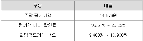 희망 공모가격은 9,400원 ~ 10,900원이고, 미래엣세증권과 신영증권에서 청약 가능합니다.
