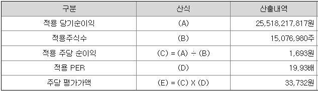 성우의 희망 공모가격은 회사의 주당 평가가액 33,723원에서 14.03% ~ 25.89% 할인한 가격입니다.